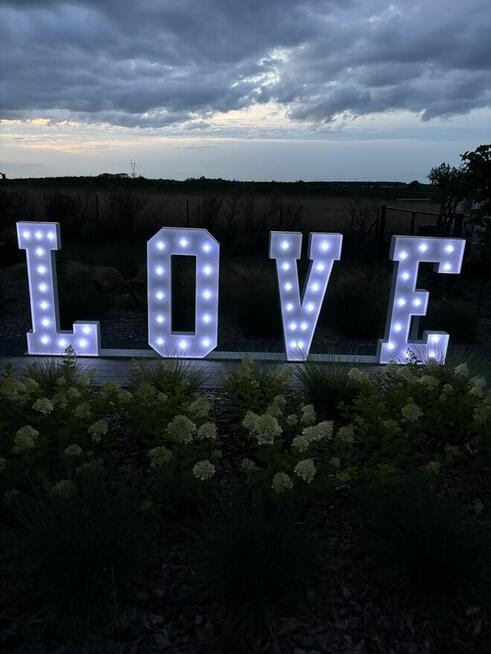 Wynajem świetlny napis LOVE wesela imprezy Każda litera ma odrębne zasilanie, co daje możliwość dowolnego ...